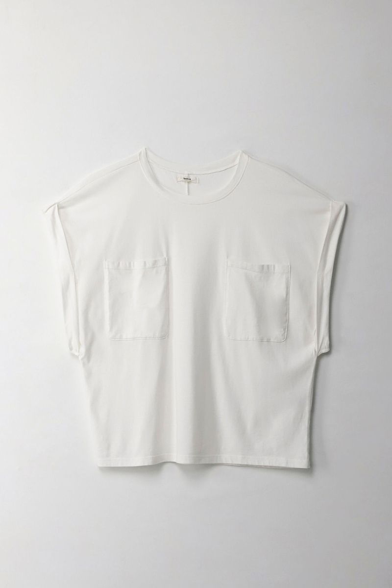 Camiseta manga sisa con bolsillo crudo para mujer
