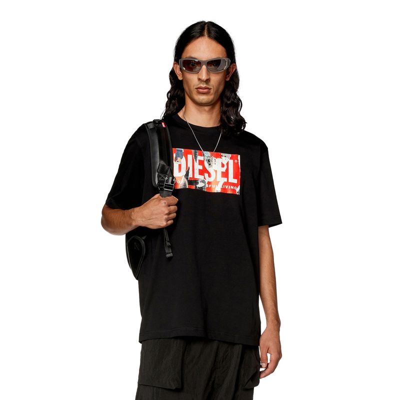 Esta camiseta de fit regular para hombre está confeccionada en suave tejido de algodón. El logotipo de Diesel estampado en el pecho reproduce el efecto despegado visto en toda la colección.
