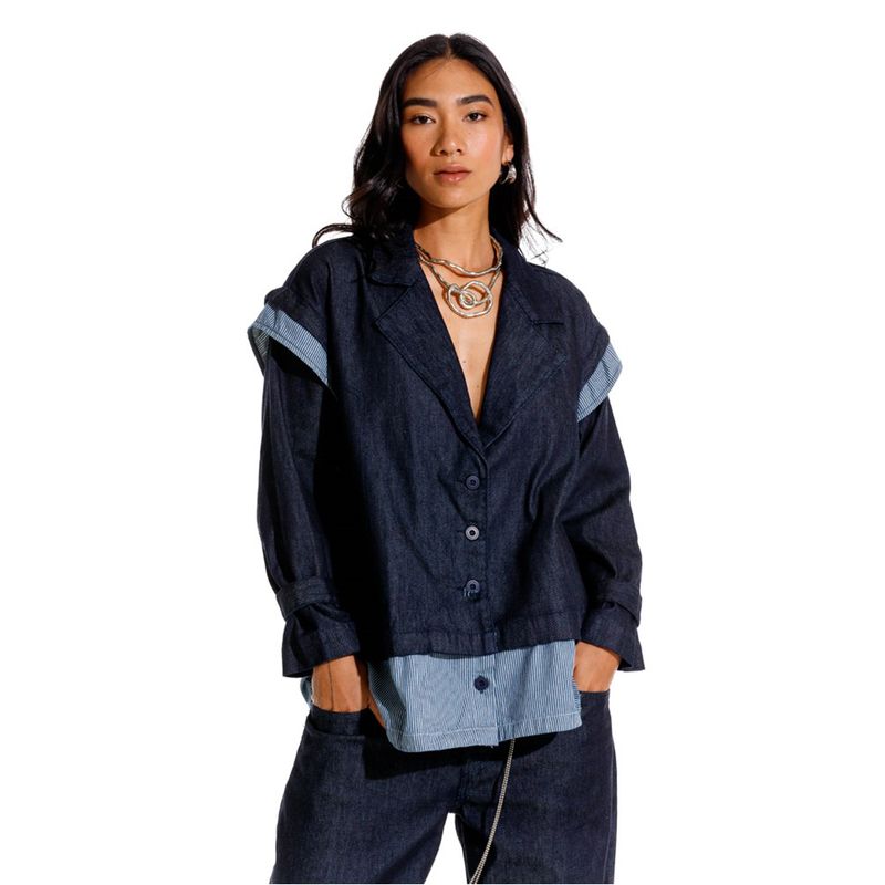Chaqueta para mujer royalty girbaud , La modelo mide entre 1.70 y 1.75, la prenda superior es talla s y la prenda inferior es talla 6. Composición: 99% Algodón,1% Elastano País origen: Colombia