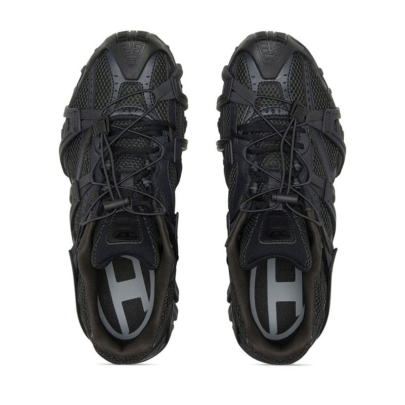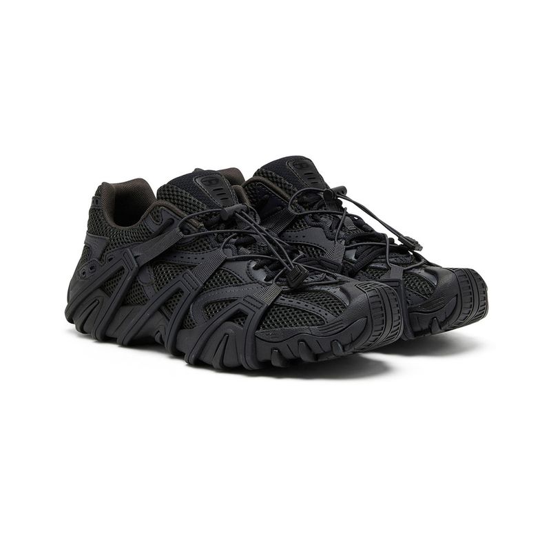 Tenis para hombre s-prototype cr lace x. estas deportivas futuristas para hombre presentan una suela industrial gruesa con mucho carácter. la suela, diseñada con exclusivos ‘dientes’ de goma arrancados de diseños de archivo, envuelve la puntera y asciende por los laterales formando una jaula. las zapatillas están confeccionadas en malla transpirable con finas superposiciones de poliuretano, y se ajustan con un sistema de cordones dobles, clásico y rápido, para un fit versátil y de apoyo.